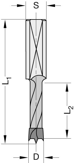 - Massief HW-snijvlak met een centreerpunt, twee snijkanten en negatief aangeslepen voorsnijders