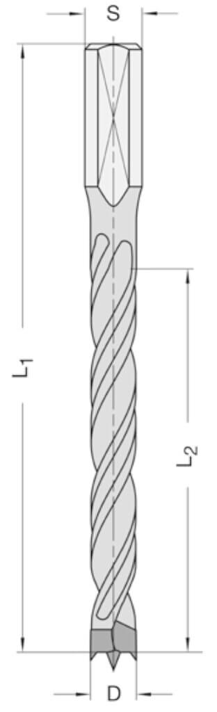 Drevelboren Ø 5 t/m 12 mm, SL=45 mm, TL=85 mm, S=10 mm, HW