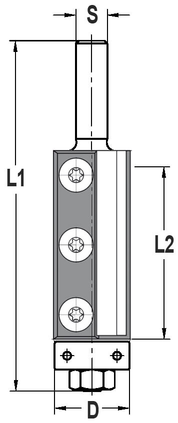 Keermeskantenfrees recht Ø 19 x 50 mm, TL=95 mm, S=12 mm, HW